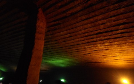 ??? 說說笑笑聲中,到達(dá)了行程的第一個(gè)目的地-浙江龍游石窟。這是在上世紀(jì)才發(fā)現(xiàn)的地下石窟建筑群,洞口很小,里面卻是非常寬敞的數(shù)個(gè)大廳,每個(gè)大廳用的柱子都是用原石料鑿出的三角形柱狀,據(jù)說這在建筑原理上更堅(jiān)固,頂面卻是整齊的臺(tái)階狀刻鑿,石窟距今據(jù)說至少有2000年時(shí)間,完全的人工開鑿,它的用途,為什么挖這樣的石窟,當(dāng)時(shí)的開采條件是怎樣完成這些石窟群的挖掘,以及開采出來(lái)的石料去了哪里?這一個(gè)個(gè)疑問至今還沒有專家能給出最終的結(jié)論,也成為了世界第九大奇跡。