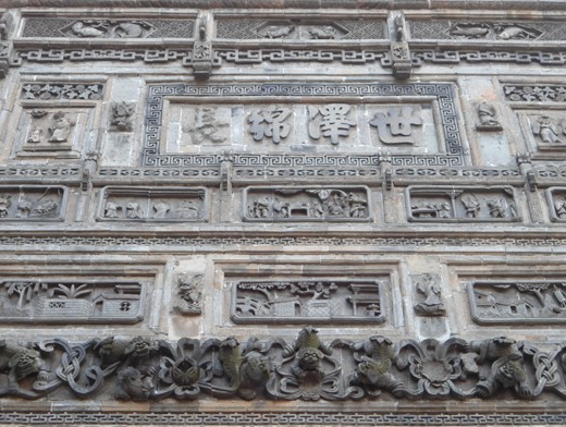 ??? 看完石窟,我們向距離不遠(yuǎn)的一個(gè)建筑群部落進(jìn)發(fā),那里是當(dāng)?shù)貫榱吮4嬉恍┐硇越ㄖ铮瑢⒃⒙湓诟鬣l(xiāng)村的有代表性的建筑物搬遷到一起,既保留了建筑物的原貌,也讓一些喜歡了解徽派建筑文化、磚雕建筑的那些游客一飽眼福??粗@些栩栩如生的花卉、人物、鳥獸,都包含著主人對(duì)家族的美好愿望,什么“龍鳳呈祥”、“三陽(yáng)開泰”、“麒麟送子”、“仙女祝壽”、“福祿同春”等等,無(wú)不體現(xiàn)出中國(guó)古代的文化底蘊(yùn),心中也不免會(huì)產(chǎn)生一種惋惜,因?yàn)檫@樣的民間藝術(shù)正逐漸淡出我們的視線,其實(shí)這也是中華民族的一大寶藏,要是能將這些能工巧匠地技術(shù)保存下來(lái),那要比保存那建筑更有意義。