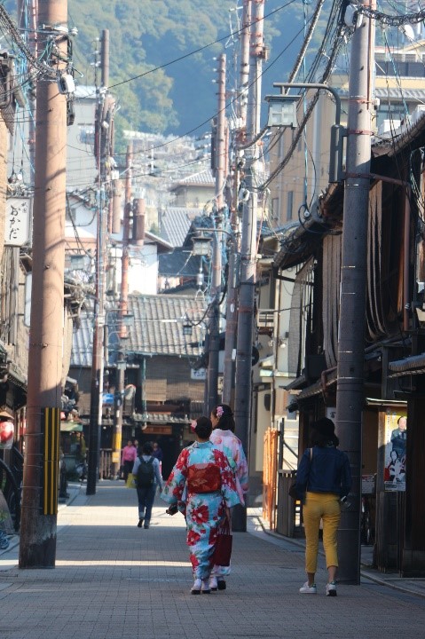 游玩了京都代表的地區(qū)祇園,祇園是日本規(guī)格最高的繁華街,大街縱橫方向建成的格子窗和舞妓的風(fēng)采十分相稱,各式發(fā)簪和日式服裝飾品也是祇園的另一個(gè)魅力。