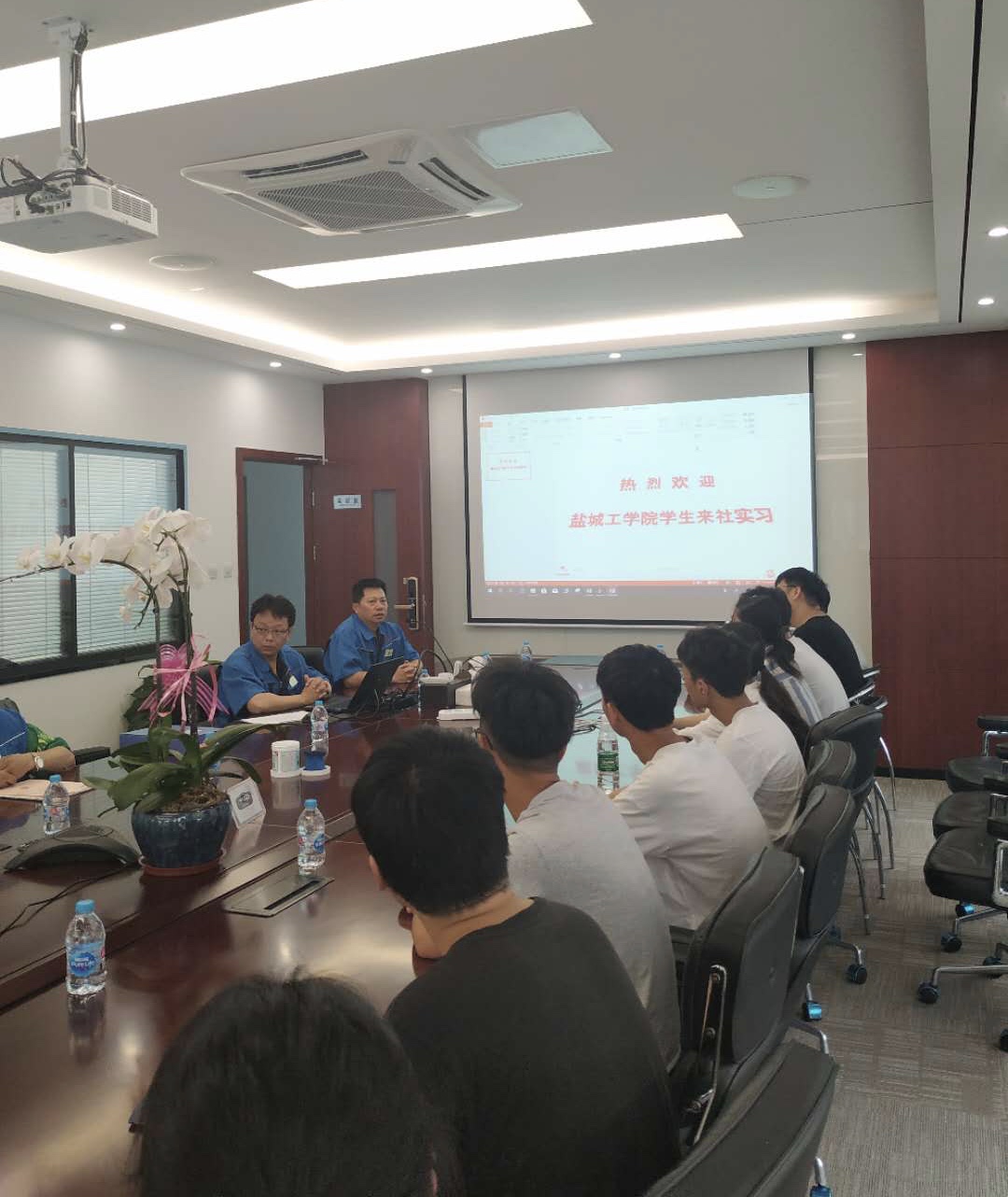 ? ? ? 2019年7月8日,實習實踐學生動員會在公司B06會議室召開。研發(fā)中心主任、總工程師戴秀海致歡迎辭,對各位同學來我社開展實習實踐活動表示熱烈的歡迎,同時向大家介紹了我司的發(fā)展歷程和相關技術核心點。機械設計課、電氣設計課、制造課、組件課、成膜課、人事課、總務課等相關部門領導出席!會議由研發(fā)中心副主任汪洋主持!